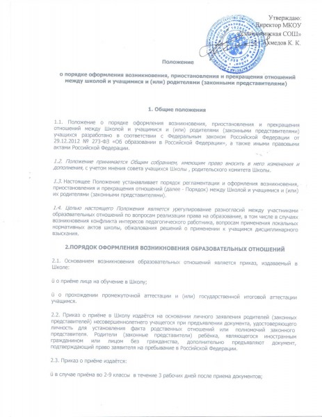 Порядок оформления возникновения, приостановления и прекращения отношений между образовательной организацией и обучающимися (воспитанниками) и (или) родителями (законными представителями) несовершеннолетних