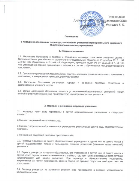 Порядок и основания перевода, отчисления и восстановления обучающихся (воспитанников)