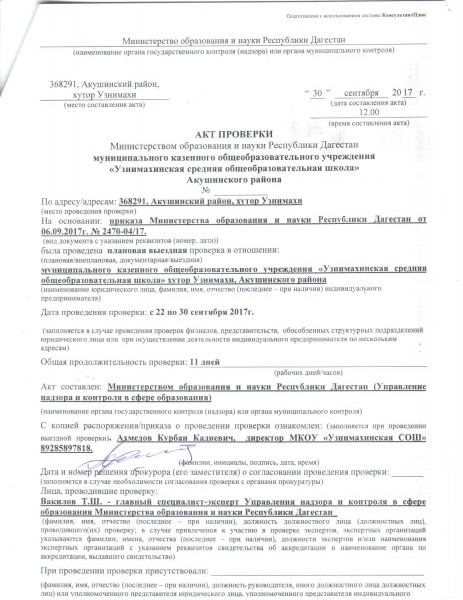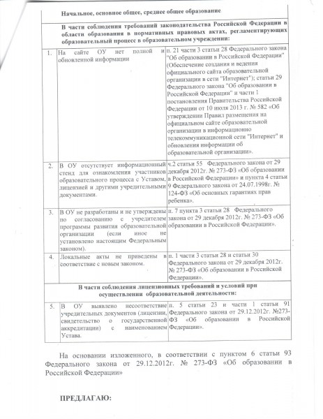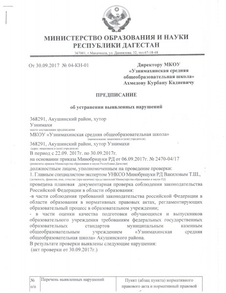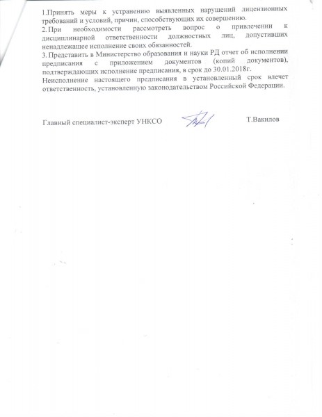Предписания органов, осуществляющих государственный контроль (надзор) в сфере образования, отчеты об исполнении таких предписаний (при наличии)